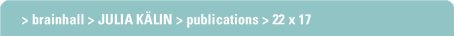Ein helles, kostbares Filzfutteral enthält 24 Karten in den Ausmassen 22 x 17 cm. Diese Karten zeigen in Farbe Ausschnitte aus Werken von Julia Kälin (Video, Fotografie, Installationen). Sie dienen der Betrachtung, der Dokumentation, der Erinnerung. Die Karten können aber auch ausgelegt, aufgestellt, aufgehängt werden. Man kann sie mischen, neu kombinieren, vergleichen. Mit Hilfe dieser Karten können die Betrachtenden teilnehmen, eingreifen, die eigenen Vorstellungen entwickeln.